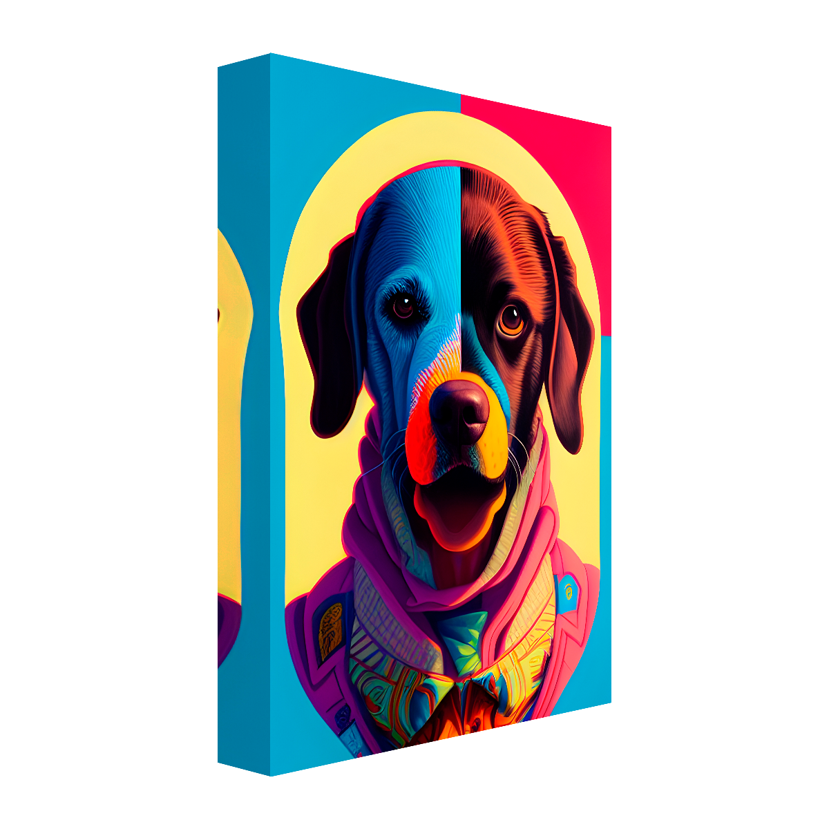 Este cuadro es una elección excelente tanto para coleccionistas de arte moderno como para aquellos que desean rendir homenaje a los compañeros caninos en su vida. Con facilidad de instalación y mantenimiento mínimo, es el complemento perfecto para aquellos que buscan un equilibrio entre funcionalidad y estética de vanguardia. Adquiere este tesoro de arte y deja que su resplandor pop transforme tu espacio.