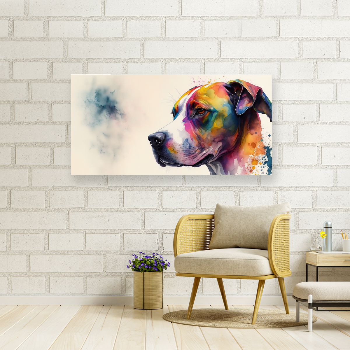 Este cuadro representa un enfoque contemporáneo en el retrato animal, perfecto para los entusiastas del arte y los amantes de los perros que buscan un elemento decorativo funcional y de larga duración.